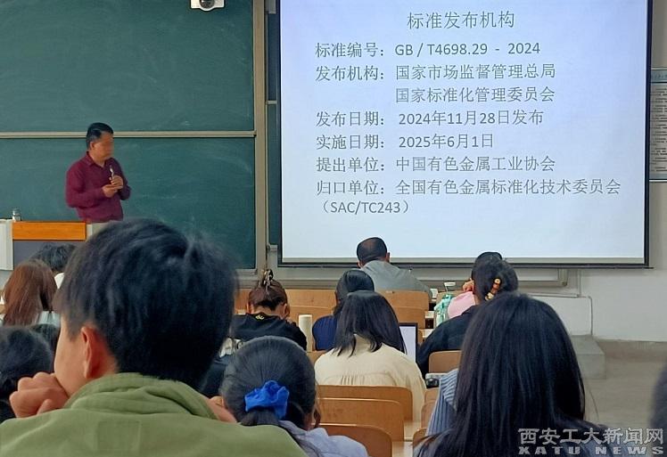 (本网讯)4月28日,材料与化工学院特邀请中船重工第十二研究所赵教育研究员作题为“光电直读光谱法测定钛合金成分最新国家标准解读”的学术报告。赵教育在报告中介绍到,随着钛及钛合金的应用日益普及,在钛合金新材料研制过程中,钛相关标准物质是钛新材料研制的基础。对海绵钛、钛及钛合金化学成分分析方法国家标准进行系统分析,介绍了最新发布GB/T2698.29-2024国家标准标准编制过程及概况,对标准的主要内容进行了详细解读...