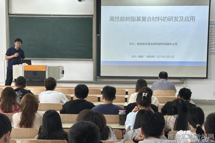 (本网讯)5月12日,材料与化工学院特邀请西安航天复合材料研究所谢瑞广研究员作题为《高性能树脂基复合材料的研发及应用》的学术报告,谢瑞广在报告中详细介绍了树脂基复合材料的基本概念,常用纤维增强体的种类、树脂种类,复合成形方法、工艺;针对高性能、先进树脂基复合材料的设计研发、成型方法及相关应用作详细介绍和案例分享,进一步开拓了学生的视野。会上,谢瑞广与同学们进行了热烈的互动交流,并分享了他从事树脂基...