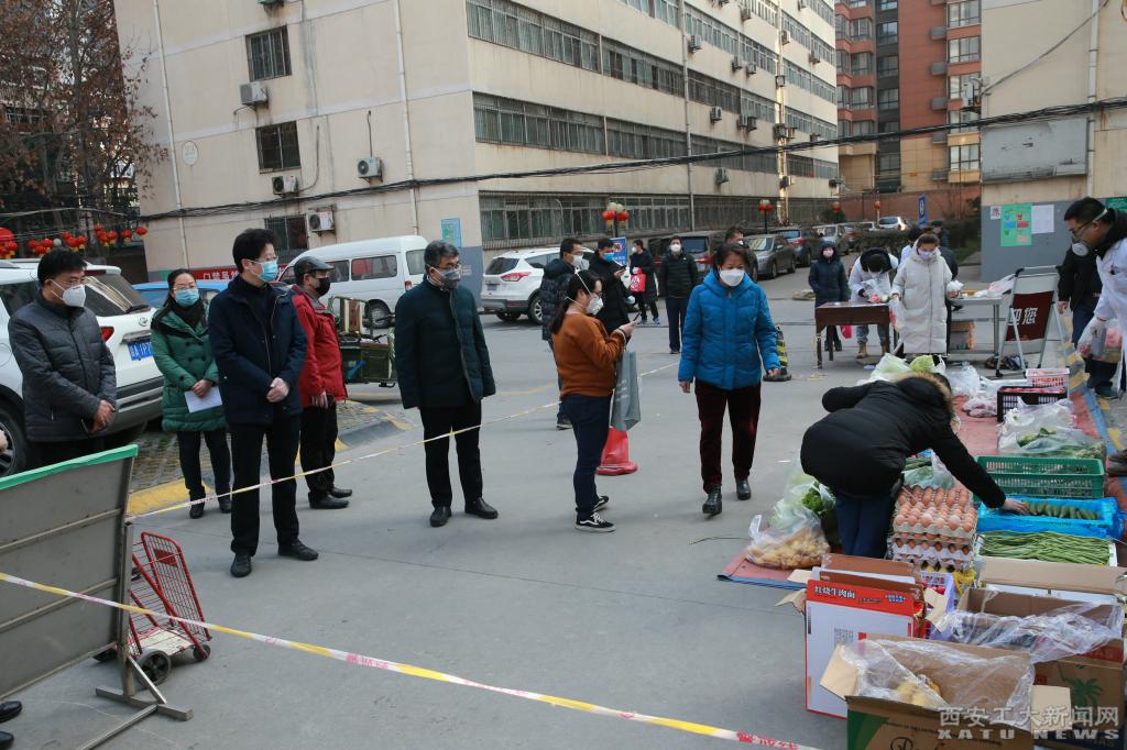 (本网讯)2月13日上午,学校疫情防控工作领导小组组长、校党委书记刘卫国和校长雷亚萍带队,与副校长刘发林、祁玉龙等一行,分别对全校疫情防控工作进行检查指导。在金花校区,刘卫国、祁玉龙先后到东家属院、金花校区、西家属院、附属中学和咸宁教育公寓家属院进行检查。每到一处,刘卫国都详细询问在岗值班人员的工作情况并表示问候。在几个家属院的购菜现场,校领导上前与来购菜的职工及家属交谈,了解大家需求和居家健...