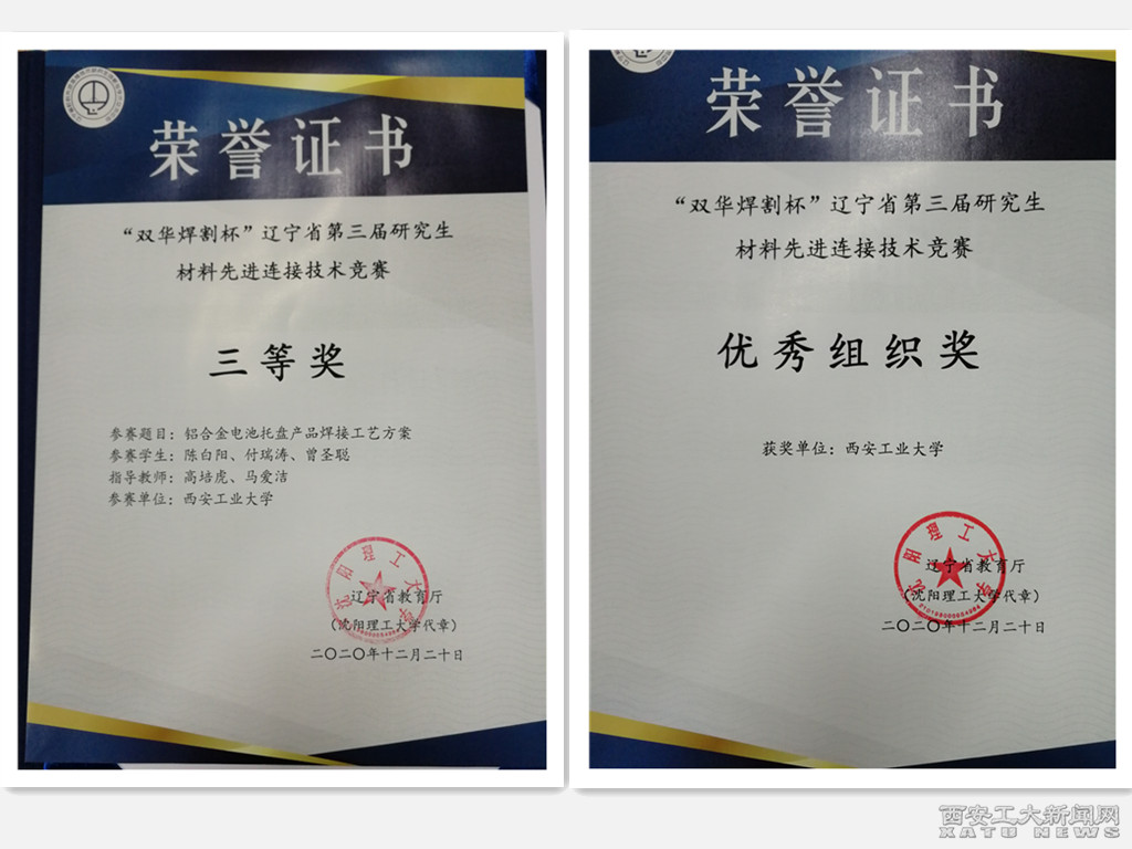 (本网讯)12月12日至13日,“双华焊割杯”辽宁省第三届研究生材料先进连接技术竞赛暨学术论坛在沈阳理工大学举办。九游JIUYOU(中国)作为兵工联盟(B8)类专业院校应邀参赛。经过网络远程评审、研究生答辩、专家现场评分等环节,校材料与化工学院高培虎、马爱洁老师指导,研究生陈白阳、付瑞涛、曾圣聪共同完成的作品《铝合金电池托盘产品焊接工艺方案》荣获三等奖。九游官网获得“优秀组织奖”。 ...