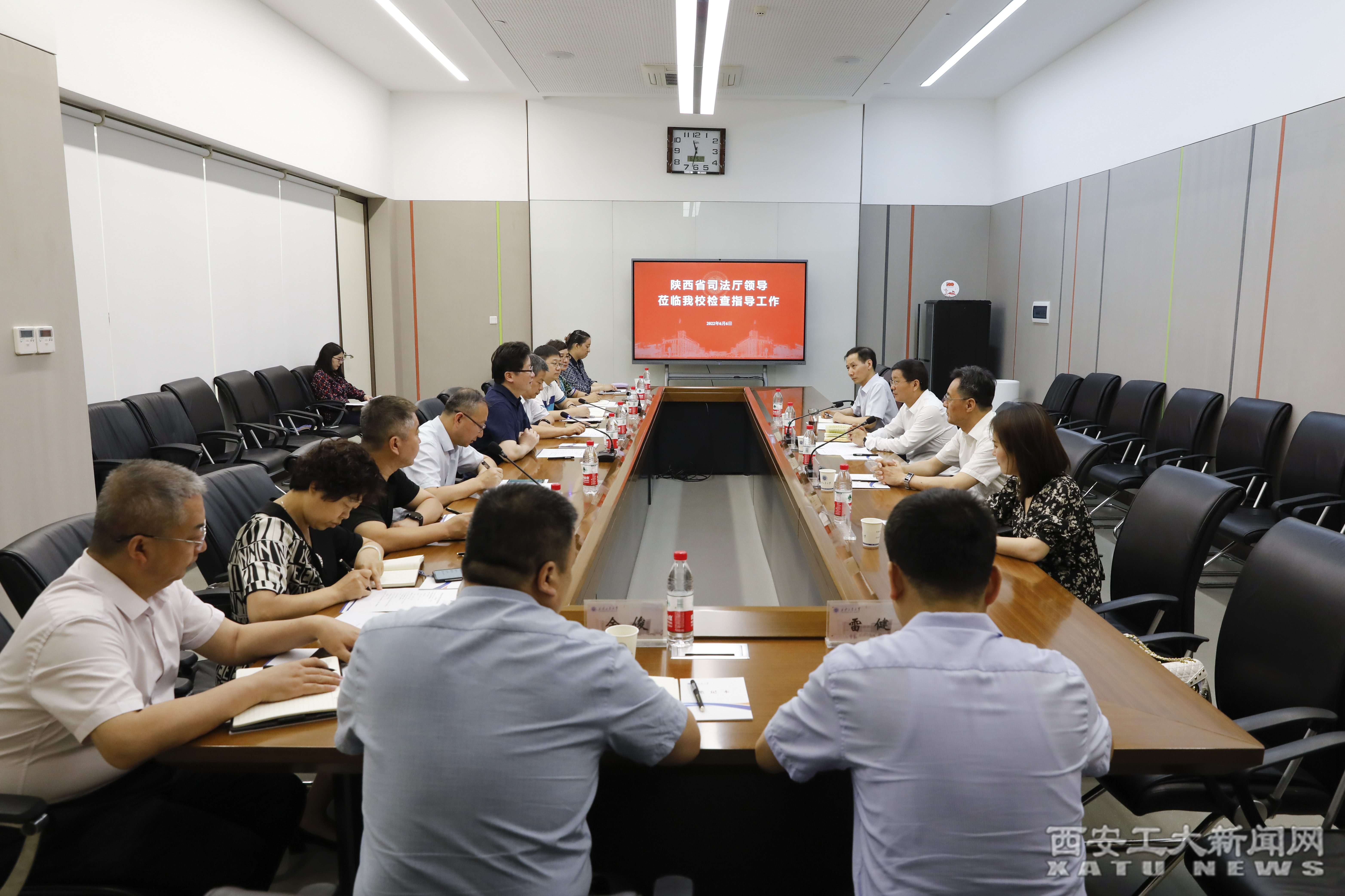 (本网讯)6月6日,省司法厅党组成员、省司法厅副厅长师建平,省纪委监委驻省司法厅纪检监察组组长、省司法厅党组成员郑建山一行4人来校考察指导工作。考察组一行在校党委副书记王军周陪同下参观了智造创新工场、校史馆。随后,双方在图书馆第二会议室举行座谈交流,校党委书记刘卫国对考察组一行来校指导表示热烈欢迎,并介绍了学校基本情况。师建平介绍了陕西省近年来全面依法治省工作的成效以及法治政府建设的亮点工作,希望...