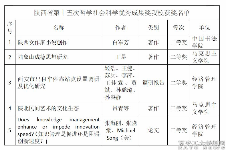 西安工大5项成果喜获陕西省第十五次哲学社会科学优秀成果奖