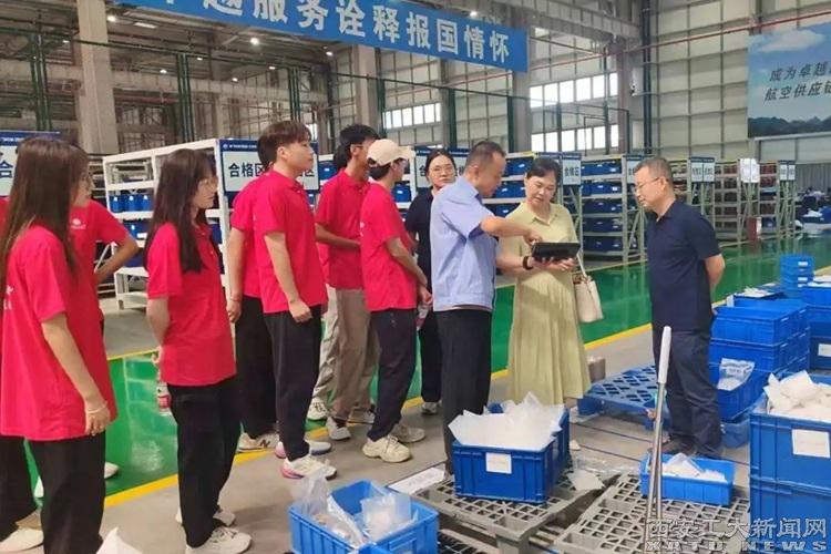 “逐梦长空,志在苍穹”实践队赴西安市各地开展航空工业发展调研活动。实践队先后调研了西飞科技(西安)工贸有限公司、西安向阳航天材料股份有限公司等企业,队员们实地参观了企业智能化仓储设备等,实地观摩航天材料从原料处理到成品检测的全流程生产环节,了解航天材料在极端环境下的性能要求与技术突破,体会“航天品质”背后的技术沉淀与匠心坚守。