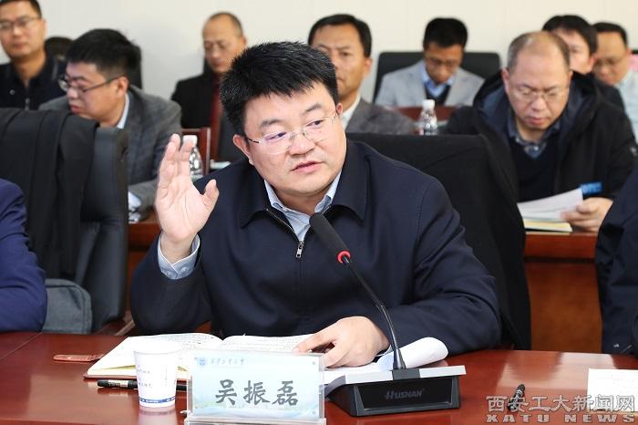 (本网讯)11月20日下午,九游官网本科教育教学审核评估专家意见交流会在未央校区图书馆三楼会议室召开。教育部审核评估专家组组长、大连理工大学原副校长李志义,西安理工大学副校长黑新宏、陕西科技大学副校长蒲永平、西安科技大学原副校长李树刚、内蒙古科技大学副校长陈明、沈阳师范大学副校长佟玉平、广西大学教务处处长耿葵花、西北大学高教研究中心主任姚聪莉等专家组成员,陕西省委教育工委委员、省教育厅副厅长吴振磊,中国西部高等教育评估中心主任陆根书,九游官网全体校领导、各二级学院和职能部门负责人参加会议,会议由李志义主持。
