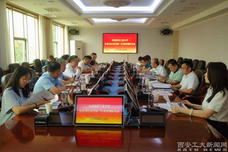 (本网讯)为进一步加强校企合作,推进科研交流,认真落实学校千人进百企专项行动要求,6月20日,校党委书记刘卫国、校长姚尧、副校长陈建一行赴西北机电工程研究所开展走访调研。西北机电工程研究所所长、党委副书记杨东,副所长刘奇涛、黄宏胜及相关部门负责人参加调研。