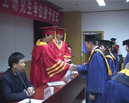 仪式在庄严的国歌声中开始。首先,刘卫国副校长代表学校学位委员会宣读了首届工程硕士研究生授予硕士学位研究生名单,刘江南校长、刘卫国副校长共同为62位工程硕士研究生们颁发了学位证书。导师代表高明教授、工程硕士研究生代表柏舸同学先后在仪式上发言。
