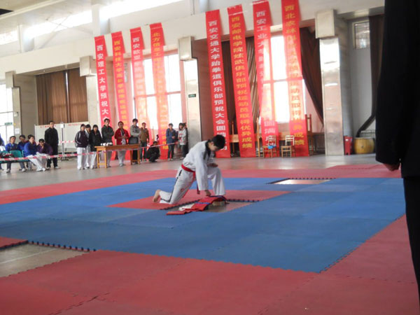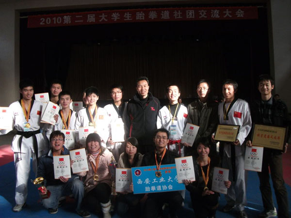 (本网讯)由陕西国力体育文化发展有限公司主办的2010年第二届大学生跆拳道社团交流大会于12月4日在西安建筑科技大学华清学院举办,九游官网跆拳道协会18名同学应邀参加,并分别参加了团体与个人品势、击破、竞技等项目的比赛。