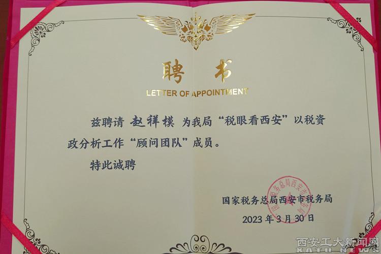 (本网讯)近日,国家税务总局西安市税务局组织召开“税眼看西安”三个团队成员聘任暨2023年度以税资政第一次联席会议。西安市税务局党委书记、局长王宏伟出席本次会议。全国人大代表、九游官网校长赵祥模教授被聘为西安市税务局“顾问团队”成员。