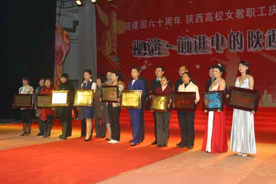 (本网讯)为迎接建国60周年,充分展示陕西高校女教工敬业爱岗、热爱生活的良好形象,省教育工会3月4日举办了以“视觉.前进中的陕西高校女教工”为主题的陕西高校女教职工庆三八服饰风采展演活动。18所高校的女教职工代表会聚西安电子科技大学活动中心共庆“三八”国际劳动妇女节。陕西省人大常务委员会副主任、省总工会主席黄玮、省总副主席、省教育工会主席李向柱、省教育工会常务副主席张敏、各高校党政领导等与千余观众观看了演出。