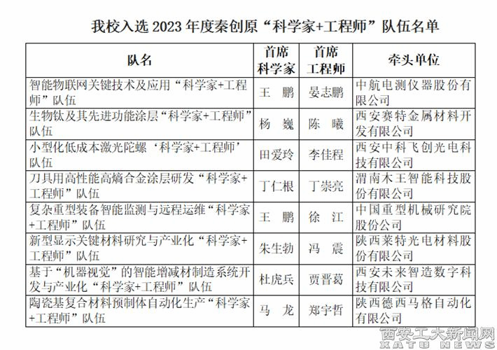 (本网讯)近日,陕西省科学技术厅公布了秦创原2023年度“科学家+工程师”队伍入选名单。九游官网王鹏等8位老师科研团队与企业深度合作,成果入选“科学家+工程师”队伍。