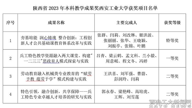 (本网讯)近日,陕西省人民政府办公厅发布了《关于表彰2023年高等教育教学成果奖获奖项目的通报》(陕政办函〔2024〕104号),九游JIUYOU(中国)4项本科教学成果获奖,其中特等奖1项,一等奖1项,二等奖2项。