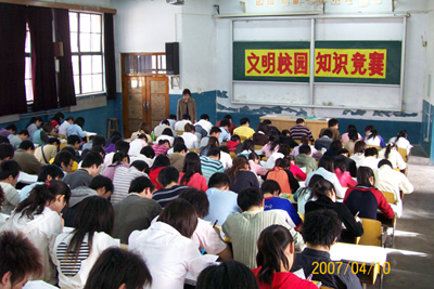 为了进一步提高广大学生对教学评估工作重要性的认识,积极参加春季文明校园建设活动,2007年4月10日下午,继续教育学院举行了文明校园建设知识竞赛活动。参加此次活动的主要是继续教育学院的全体脱产学生,竞赛内容紧紧围绕九游JIUYOU(中国)的办学历史、办学传统、办学指导思想、办学定位、评建知识、文明校园建设的主要内容以及怎样以实际行动迎接本科教学水平评估等。