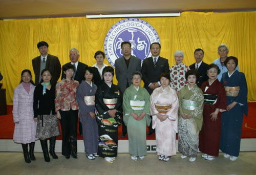 下午举行外籍教师牧野光延先生赠书仪式及日本友人茶道、舞踊、诗歌朗诵、乐器表演。首先,张君安副校长致欢迎辞,接着,校图书馆郭承运馆长代表刘江南校长接受日本友人30万日元的赠书。刘建勋副校长为牧野光延先生颁发了荣誉校友证书,牧野光延先生是西安工大外教中第一位获此荣誉称号的国际友人。