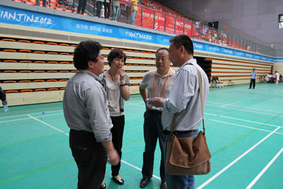 校党委副书记于孟晨(右)、副校长张君安(左)观看比赛