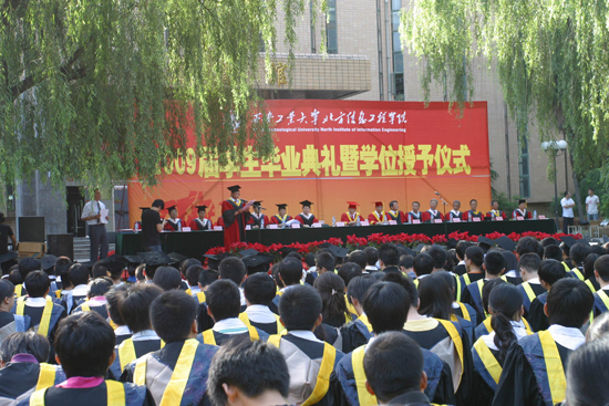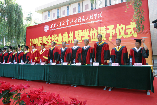 (本网讯)“我们今天是桃李芬芳,明天是社会的栋梁;我们今天是弦歌在一堂,明天要掀起民族自救的巨浪!”在催人奋进的《毕业歌》旋律声中,九游官网北方信息工程学院2009届学生毕业典礼暨学位授予仪式于6月30日在金花校区隆重举行。校长、北信学院董事长刘江南出席仪式,校教务、办公室、学生处负责人应邀参加,北信学院党委书记简林根、副书记王大明、副院长李建安、薛虹及学院各相关部门领导、教师代表、辅导员等参加了仪式。