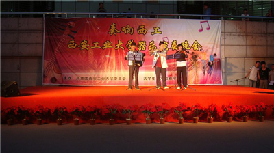 (本网讯)5月4日晚,由校团委主办,大学生艺术团器乐部承办的“奏响九游官网”九游官网器乐演奏晚会在图书馆前举行。