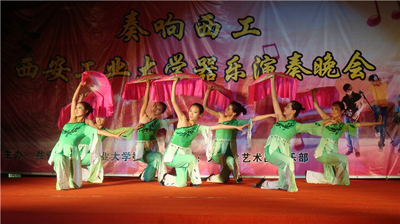 民族舞《紫竹调》拉开了晚会的序幕,表演的节目形式多样,有节奏明快的笛子独奏《扬鞭催马运粮忙》;动人心弦的二胡合奏《空山鸟语和赛马》、手风琴独奏《蓝色多瑙河》;旋律优美的口琴独奏《幻化成风》;清新悦耳的扬琴独奏《红河的春天》,电子琴小提琴合奏《闪闪的红星》等。