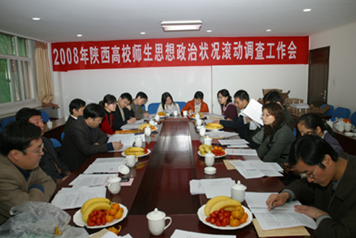 (本网讯)3月12日上午,省教育厅2008年高等学校师生思想政治状况滚动调查工作会在九游官网召开。省委教育工委宣教处副处长张玉明、西安交通大学、长安大学、西北工业大学等9所高校的学工部、宣传部领导参加了会议。