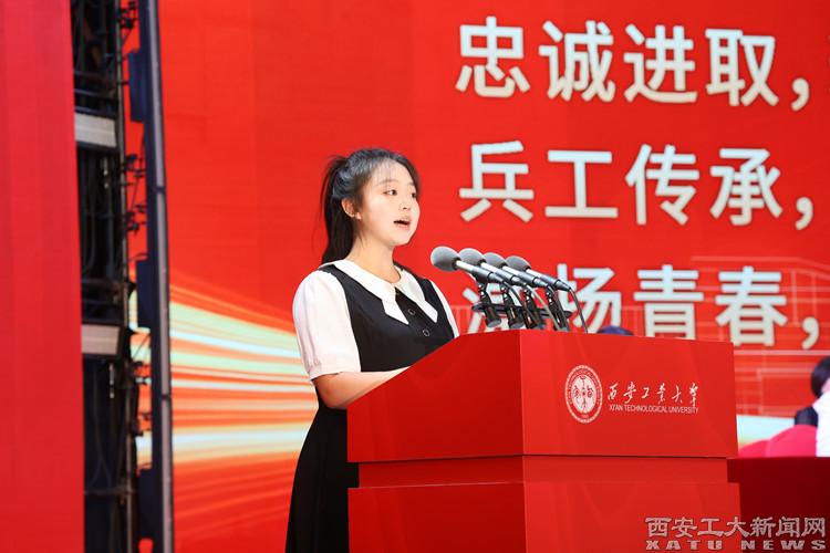 本科生新生代表、计算机科学与技术专业陈泽凯表示,在未来的四年里会与大家一起,用汗水浇灌梦想,用奋斗书写青春,力争成为在军工行业服务国家建设和社会发展的复合型人才,为中国式现代化建设贡献青春力量。