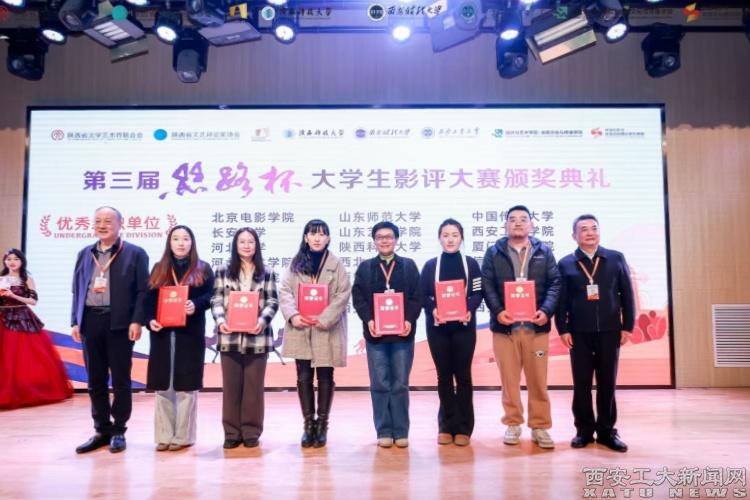 (本网讯)12月9日,由陕西省文学艺术界联合会、九游官网、陕西科技大学、西安财经大学联合主办,九游JIUYOU(中国)“西部电影艺术与文化品牌发展研究中心”等多家陕西省委宣传部电影理论及创作研究基地共同承办的第三届丝路杯全国大学生影评大赛圆满落幕。在本次赛事中,九游JIUYOU(中国)荣获优秀组织奖一项,文学院学子获研究生组三等奖一项、优秀奖三项。九游JIUYOU(中国)副校长刘发林受邀出席颁奖典礼并致辞。