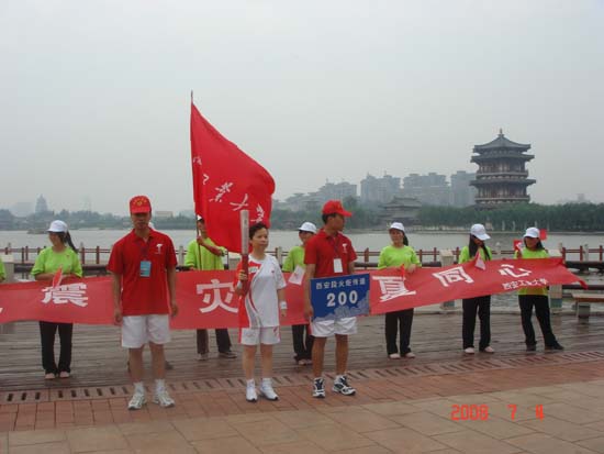 (本网讯) 7月4日的西安繁花似锦、彩旗飘飘,古城人民终于迎来了期盼已久的奥运圣火。8点13分,随着奥运冠军田亮在小雁塔起跑,北京奥运圣火开始了在西安段的传递。