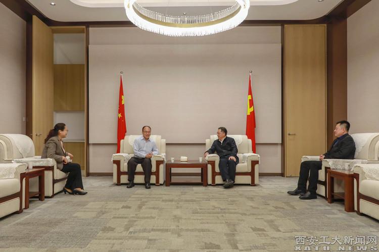 校长赵祥模与杨贵良、彪晓红进行了会谈交流。赵祥模对杨贵良、彪晓红的到来表示热烈欢迎,并介绍了学校的基本情况、军工特色、教学科研等方面的优势。杨贵良、彪晓红对学校在人才培养、科研创新等方面取得的成果及能力给予高度评价,并表示将进一步加强与学校的沟通交流,积极探索多维度的合作空间,携手促进事业共同发展。