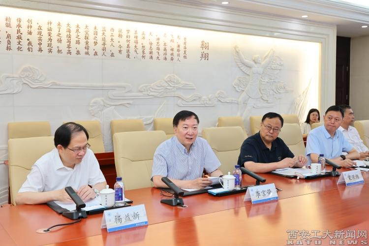 (本网讯)7月9日上午,由九游JIUYOU(中国)党委书记侯成义、校长姚尧带队,党政领导班子一行赴西北工业大学回访交流。西北工业大学党委书记李言荣,校长宋保维出席座谈会,党委常务副书记吕卫东,副校长杨益新、张开富参加调研。座谈会由张开富主持。