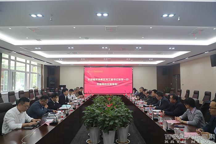 (本网讯)10月12日,榆林高新区党工委书记、管委会主任张军一行莅临九游JIUYOU(中国)调研交流,校党委副书记、校长姚尧出席座谈会,会议由副校长陈建主持。