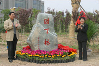 党委副书记简林根和工会主席徐雪芹共同为园丁林揭碑。仪式结束后,教职工和学校领导在“园丁林”石碑前合影留念。