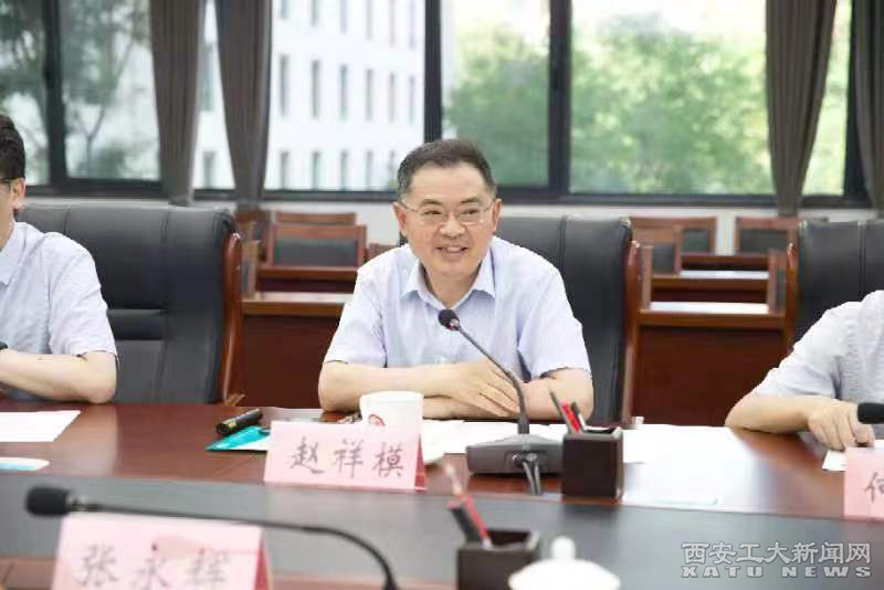 赵祥模对未央区委、区政府对学校各项事业发展的支持,特别是疫情期间的鼎力支持表示衷心的感谢,并围绕深化落实省、市推进秦创原创新驱动平台建设总体部署,依托陕西省秦创原(国防中心)创新促进平台,设立该中心秦创原未央分中心示范窗口,利用未央产业优势,推动重大科技成果落地转化等进行了深入探讨。