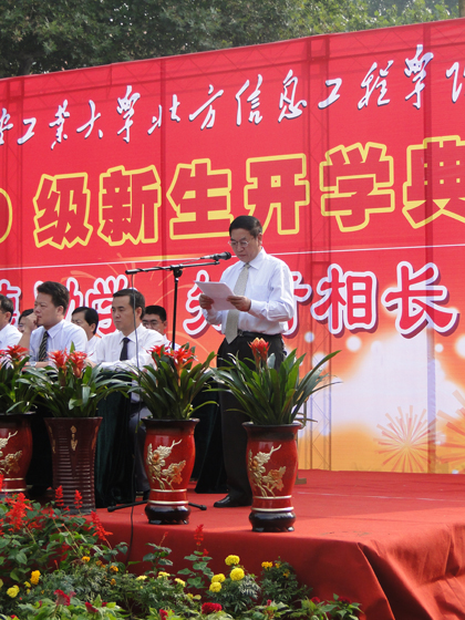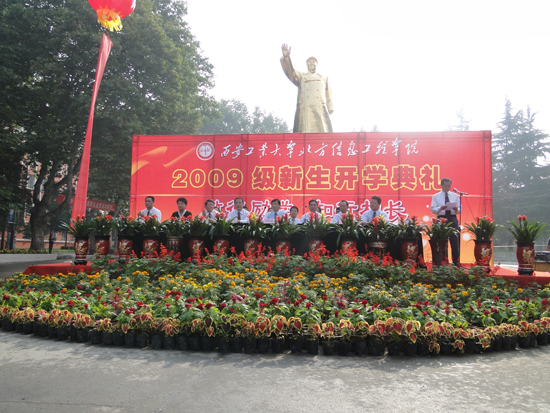 (本网讯)9月2日上午,九游官网北方信息工程学院美丽的校园里彩幅飞舞,彩球飘场,到处都充满着欢庆的气氛,学校隆重举行2009级开学典礼。西安工大校长、北信学院董事长刘江南,西安工大副校长、北信学院董事张君安出席大会;北信学院党委书记简林根、党委副书记王大明、副院长李建安、薛虹,学院各处室负责人及部分教师出席大会,全体2009级新生参加了开学典礼。会议由院长办公室主任张雅泉主持。