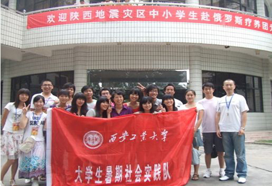 同时,团委与国际交流与对外合作处组建一支大学生志愿者实践队,承担了今年陕西省地震灾区儿童赴俄罗斯疗养团西安行前的文艺培训工作,实践队以“传播文化,传递文明”为主题,对来自地震灾区的孩子们进行为期10天的文化节目的排练。活动期间,实践队每天要召开例行会议,汇报排练进程,共同商讨节目方案以及了解实践活动的开展情况,对待当天的问题当天解决,积极与带队老师及教育厅各领导沟通,最终顺利完成了各项实践内容,整个实践活动得到了省教育厅相关领导的认可。