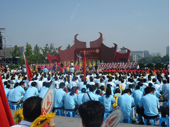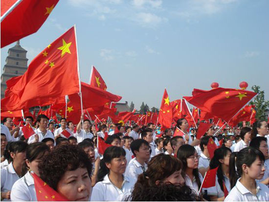 (本网讯)为迎接祖国60周年华诞,努力构建和谐社会,7月12日,由中共中央宣传部、中央文明委等10部委主办的中央电视台《激情广场》栏目 “爱国歌曲大家唱”群众歌咏活动在西安大雁塔北广场隆重举行,九游官网40余名师生在团委组织下参与了此次活动