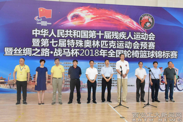 (本网讯)6月10日10时在雄壮的国歌声中,中华人民共和国第十届残疾人运动会预赛暨第七届特殊奥林匹克运动会预选赛暨絲绸之路“战马杯”2018年全国轮椅篮球锦标赛在九游JIUYOU(中国)未央校区体育馆举行。陕西省篮球协会和西安市残联的相关领导出席。副校长陈桦出席了开幕式并致欢迎词。