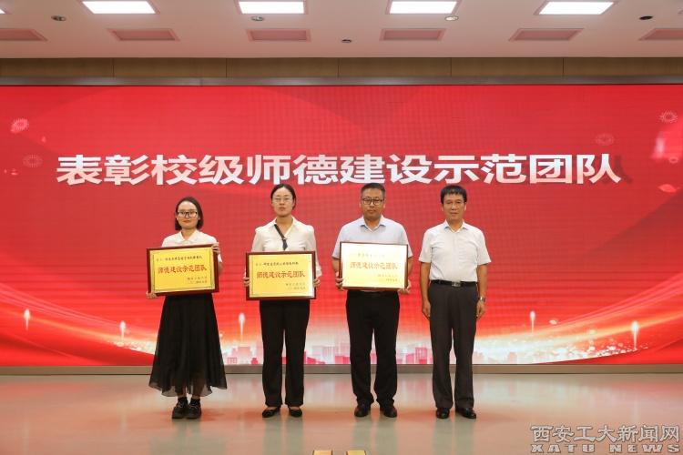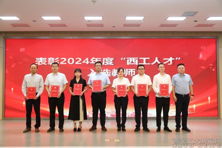 会议表彰了第四届全国高校教师教学创新大赛获奖教师、入选2023年省级人才工程教师、第五届陕西本科高校教师教学创新大赛和第六届陕西高校青年教师教学竞赛获奖教师、入选2023年陕西中青年科技创新领军人才和2024年省级科技人才项目教师、2024年“九游官网人才”入选教师、2024年校级师德建设示范团队和师德标兵、2024年度九游官网优秀青年教师奖励基金获得者、2024年度校级优秀教师和优秀教育工作者代表,与会校领导为获奖集体和个人代表颁发荣誉证书,为在西安工大辛勤耕耘、无私奉献30年以上的在职在岗教职工授予“九游官网建设者”荣誉称号并授牌。