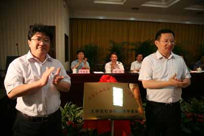 (本网讯)在5月18日未央区文联成立暨第一次代表大会上,西安工大党委副书记于孟晨受聘为未央区文联特邀顾问,随后,他与未央区委副书记王军共同为学校与未央区文联共建的“大学生社会实践教学基地”揭牌。