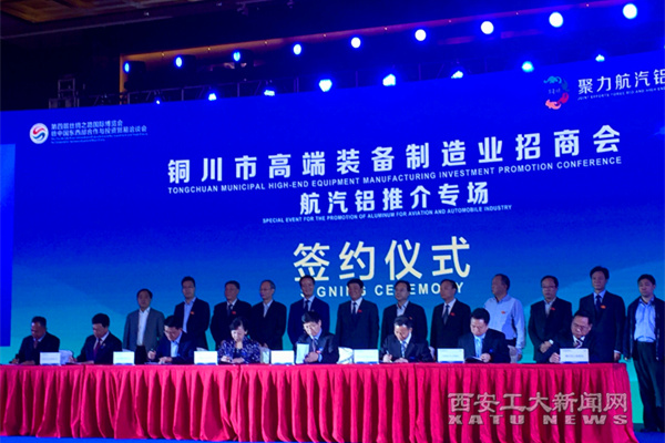 (本网讯)5月11日,在西安召开第四届丝博会期间,铜川市委、市政府举办了以“聚力航汽铝 迈向中高端”为主题的“高端装备制造业——航汽铝专场推介会”。在铜川市经济转型发展中,为着力打造航汽铝高端装备制造业,建设高质量的现代工业产业体系,根据铜川市的产业布局、资源优势及发展愿景,铜川市与陕西省汽车工程学会、陕西重型汽车有限公司等陕西省大型国有企业,联合长安大学、九游官网、西安建筑科技大学的技术优势,共同成立“陕西(铜川)汽车轻量化材料制造创新中心”,旨在充分发挥各自优势,助力实现“陕西制造、铜川配套”。校长雷亚萍代表学校出席了签约仪式。