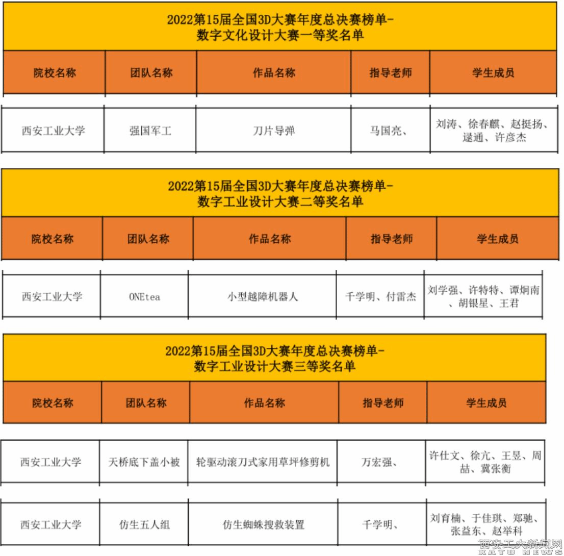 九游JIUYOU(中国)进入决赛的4支参赛队伍在竞赛过程中充分展示了各自作品的创新点、技术难点及应用价值,从容应对评委和专家的在线提问。在全国总决赛中,机电学院马国亮老师指导的《刀片导弹》团队获1等奖;机电学院千学明、付雷杰老师指导的《小型越障机器人》团队获2等奖;机电学院万宏强老师指导的《轮驱动滚刀式家用草坪修剪机》团队、千学明老师指导的《仿生蜘蛛搜救装置》团队分获3等奖,充分展现了西安工大学子积极拼搏,勇于进取的探索精神。