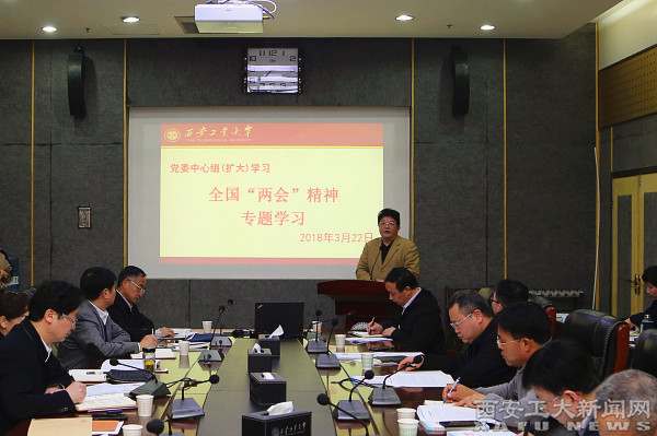 (本网讯)3月22日,校党委理论学习中心组召开扩大学习会,专题传达学习全国“两会”精神。校党委书记刘卫国主持。