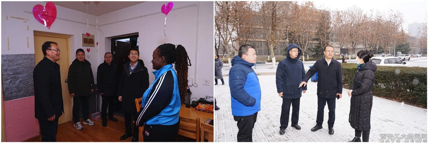 2月2日上午,校党委副书记马福一行首先到未央校区西南门施工现场、中心配电室、学生餐厅进行实地查看,详细了解校园内建设及施工安全、电力运行、食品安全、卫生管理等工作情况。随后前往留学生公寓、研究生公寓检查查看公寓内消防设备配置、门禁管理和用电安全等情况。马福在检查留学生公寓时,对宿舍取暖和外出报备情况也进行了询问。