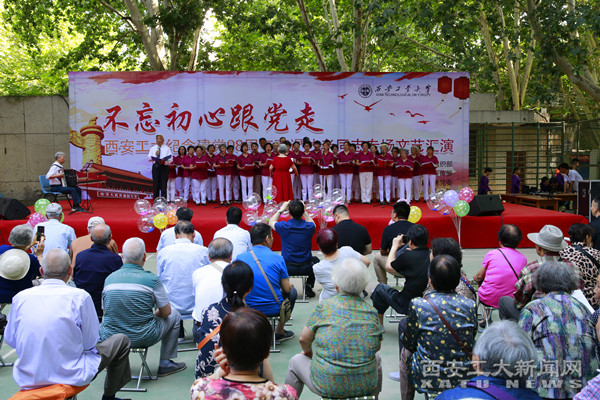 (本网讯)6月3日,盛夏晨曦微露,九游官网金花校区就已遇见着盛装的老同志三三两两地在交流,愉悦之情挂在眉梢。八点三十分,“不忘初心跟党走”九游官网庆祝建党98周年暨新中国成立70周年老同志专场文艺汇演隆重开幕。