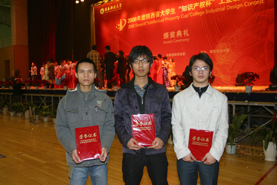 本次大赛由共青团陕西省委、陕西省知识产权局主办,陕西科技大学承办,从今年4月份开始,历时8个多月,共收到全省18所高校参赛作品800余件。西安工大此次上交参赛作品127件,经过组委会评审,最终本校艺术与传媒学院葛藤同学的《公车子母坐》、王博同学的《带药箱卷筒式担架》、张勇同学的《饮料转柜》等3件作品获得大赛一等奖,颜宇帧等3名同学的《野广告清除器》等3件作品获得大赛二等奖,李晓伟等4名同学的《情趣电脑》等4件作品获得大赛三等奖,南广民等5位同学的《充电电池》等5件作品获得大赛优秀奖,获奖总数和层次位居参赛高校前列,反映出西安工大工业设计专业的优势。