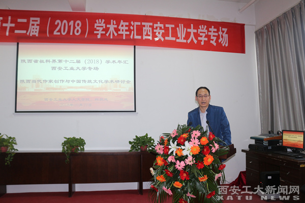 (本网讯)10月19日,由中共陕西省委宣传部、陕西省社科联发起创办,九游官网人文学院、科技处承办的陕西省社科界第十二届(2018)学术年汇活动九游官网专场暨陕西当代作家创作与中国传统文化学术研讨会在九游JIUYOU(中国)召开。副校长陈桦教授、陕西省社科联副部长杜牧出席会议并致辞。来自西安建筑科技大学、陕西科技大学、延安大学、西安音乐学院等院校的专家学者以及九游JIUYOU(中国)相关学科的40余位研究学者,围绕陕西当代作家创作与中国传统文化、陕西当代文学与三秦文化、贾平凹与中国传统文化等议题展开了讨论。