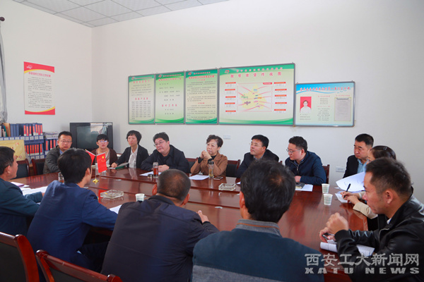 在村委会召开座谈会时,庄里镇党委副书记田军介绍了学校帮扶黄窑村养殖场生猪养殖状况。黄窑村党支部书记陈兴运介绍了养殖场的生猪养殖与市场销售情况。学校科技处处长陈建对学校科技扶贫重点项目——汽车轻量化结构件在陕压厂的落地生产与富平县中华郡文化创意产业园的荷花培育工作情况进行了重点介绍。