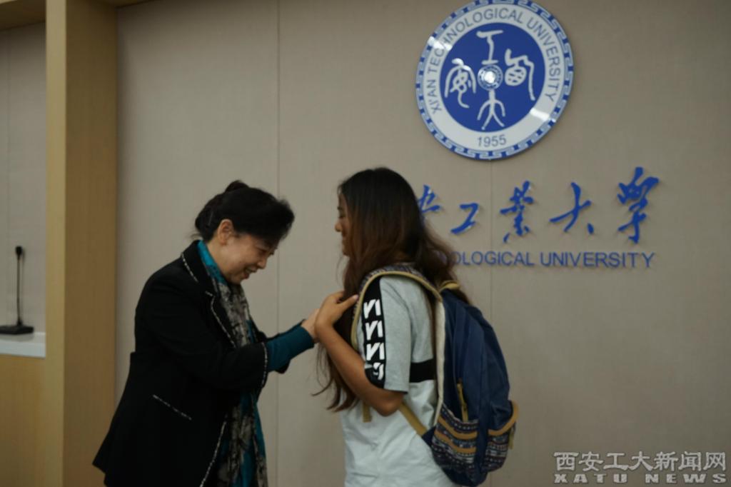 随后,学校领导为全体留学生佩戴了校徽并发放文具。