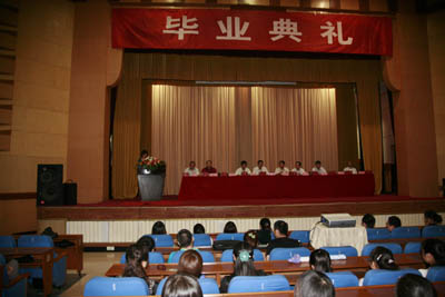 典礼在庄严的国歌声中开始。首先,宦洁主任宣读了关于表彰省级和校级优秀学生的决定,并号召全体学生向他们学习。校领导分别为荣获省级、校级优秀毕业生、优秀学生干部、三好学生颁发了荣誉证书。