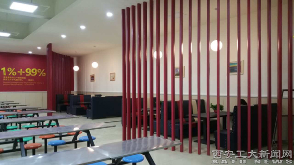 改造后的博园餐饮大厦保留了建筑的原有风格,同时融入了崭新的元素,以迎合现代大学生的审美眼光。大厦整体几净窗明,优雅的用餐环境配上轻柔的音乐,舒适的中央空调带来阵阵凉意。现在的餐饮大厦不仅有舌尖美食,还有休闲小聚的卡座和励志读书的一隅。此次改造在饭菜品类上也着力进行了调配,风味菜品更加丰富,能够满足师生的不同需求,在布局上进行了全面的调整,功能区域更加完善,设置更加合理、安全、时尚、美观,同时,还拓展了服务范畴,除满足学生一日三餐需求之外,还增加了休闲、读书的功能,在固定的一些区间内着力营造出悠闲静谧的氛围,为师生提供驻足休息的场所,另外,还提供餐饮外卖快递服务。