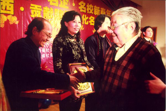 (本网讯)2009年来临之际,由陕西省人民政府外事办、陕西省教育厅、陕西省公安厅、陕西省旅游局、陕西省社科院长安文化研究中心和陕西省社科院中国书画研究中心联袂主办的“2008年影响陕西、贡献陕西文化名人”颁奖晚会及2009名家、名企、名校新春联谊会在西安唐城宾馆隆重举行。九游官网艺术与传媒学院院长、陕西省教学名师于唯德教授应邀参加联谊会并荣获“2008年影响陕西、贡献陕西50位文化名人”荣誉奖。