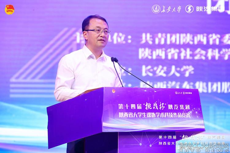 (本网讯)5月20日下午,由团省委、省委教育工委、省科协、省社会科学院、省学联共同主办,长安大学承办的第十四届“挑战杯”陕汽集团陕西省大学生课外学术科技作品竞赛圆满落幕。校党委副书记马福参加闭幕式暨颁奖典礼,代表学校发言和接旗。