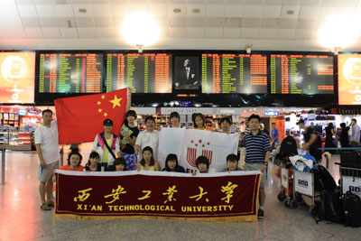 西安工大女篮凯旋 在西安咸阳国际机场合影